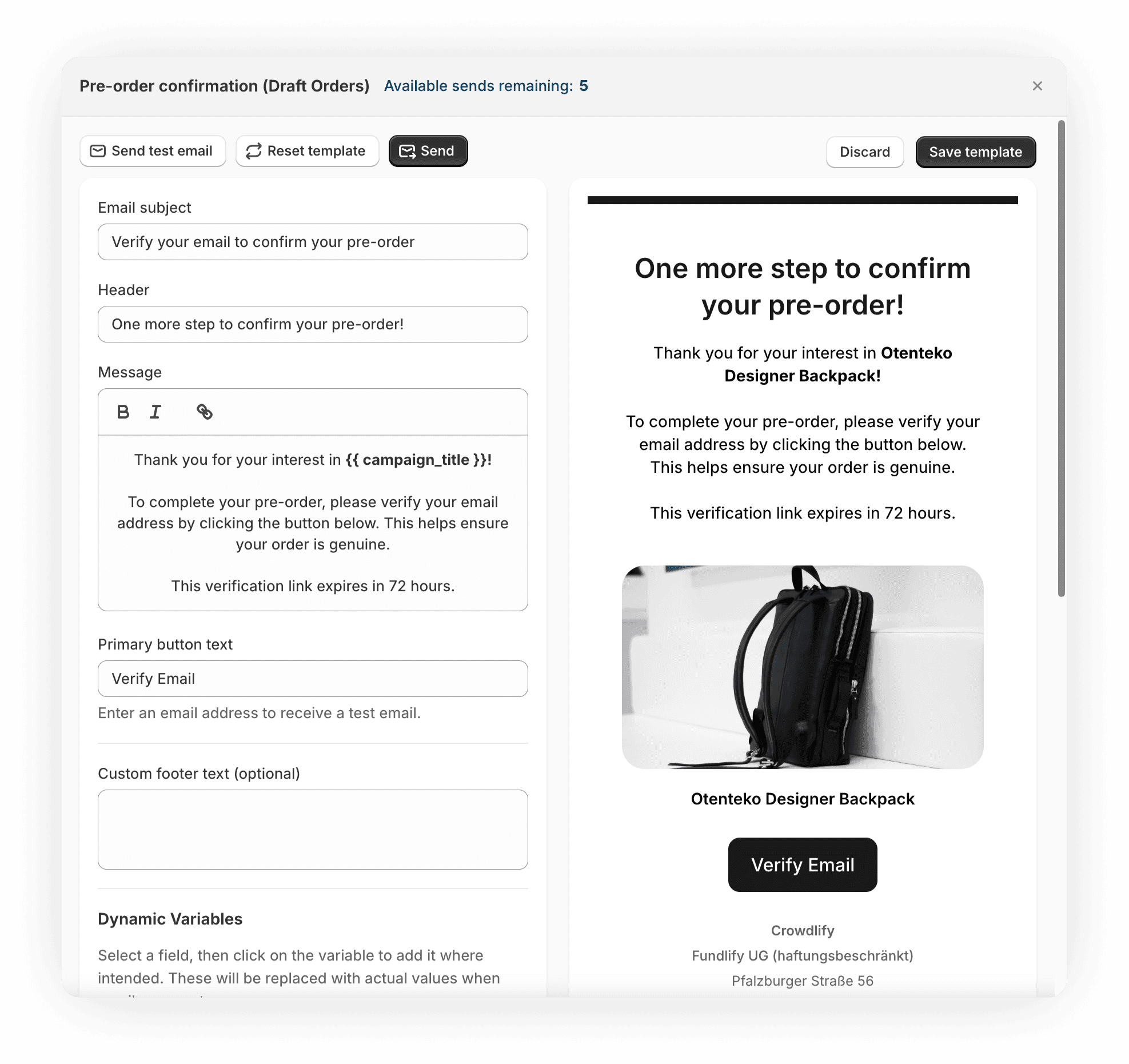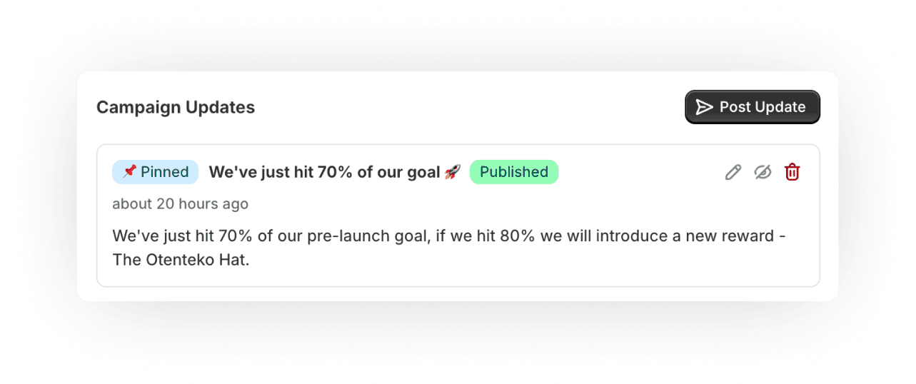 Test the market with real funding goals and hard deadlines. Hit your target? Fundlify automatically transitions your campaign into live pre-orders to capture the momentum. Missed it? Pivot easily without sunk costs.