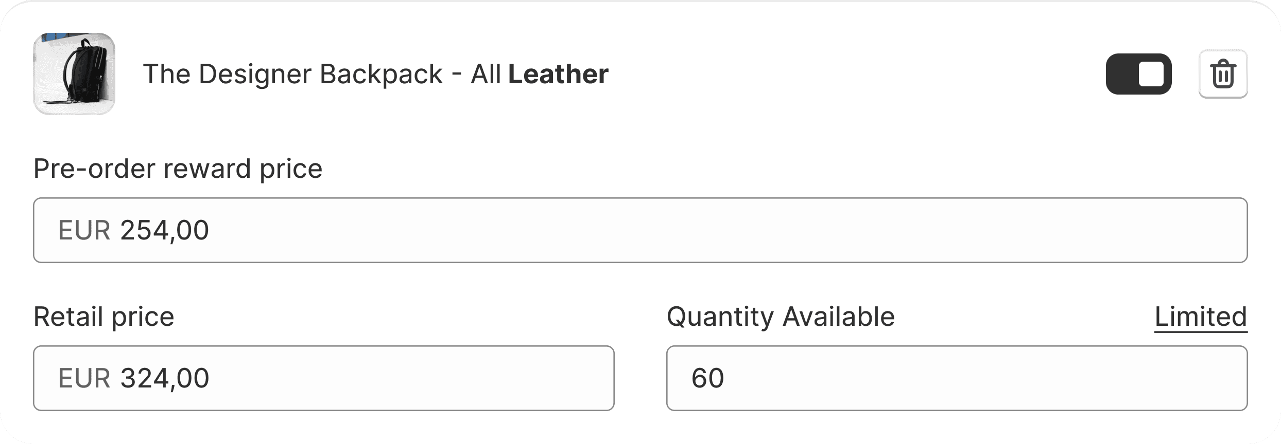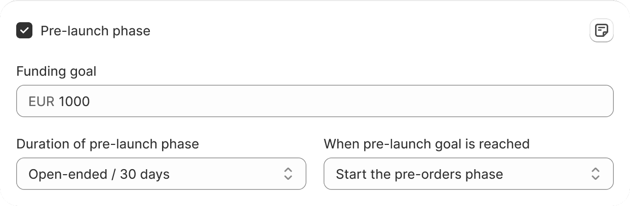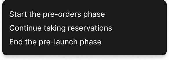 Activate the pre-launch phase to validate demand before accepting pre-orders. During this phase, backers can reserve their order using their email, without making a payment.