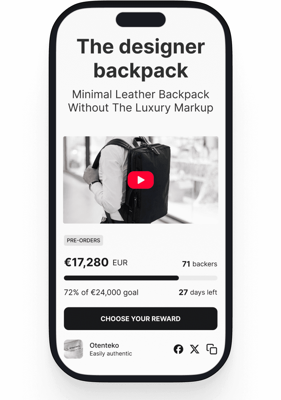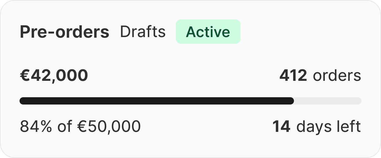 Set a funding goal and timeline. Automatically stop when you hit your target—or keep building momentum. Then switch to pre-orders or close it down. Decisions based on data, not assumptions.
